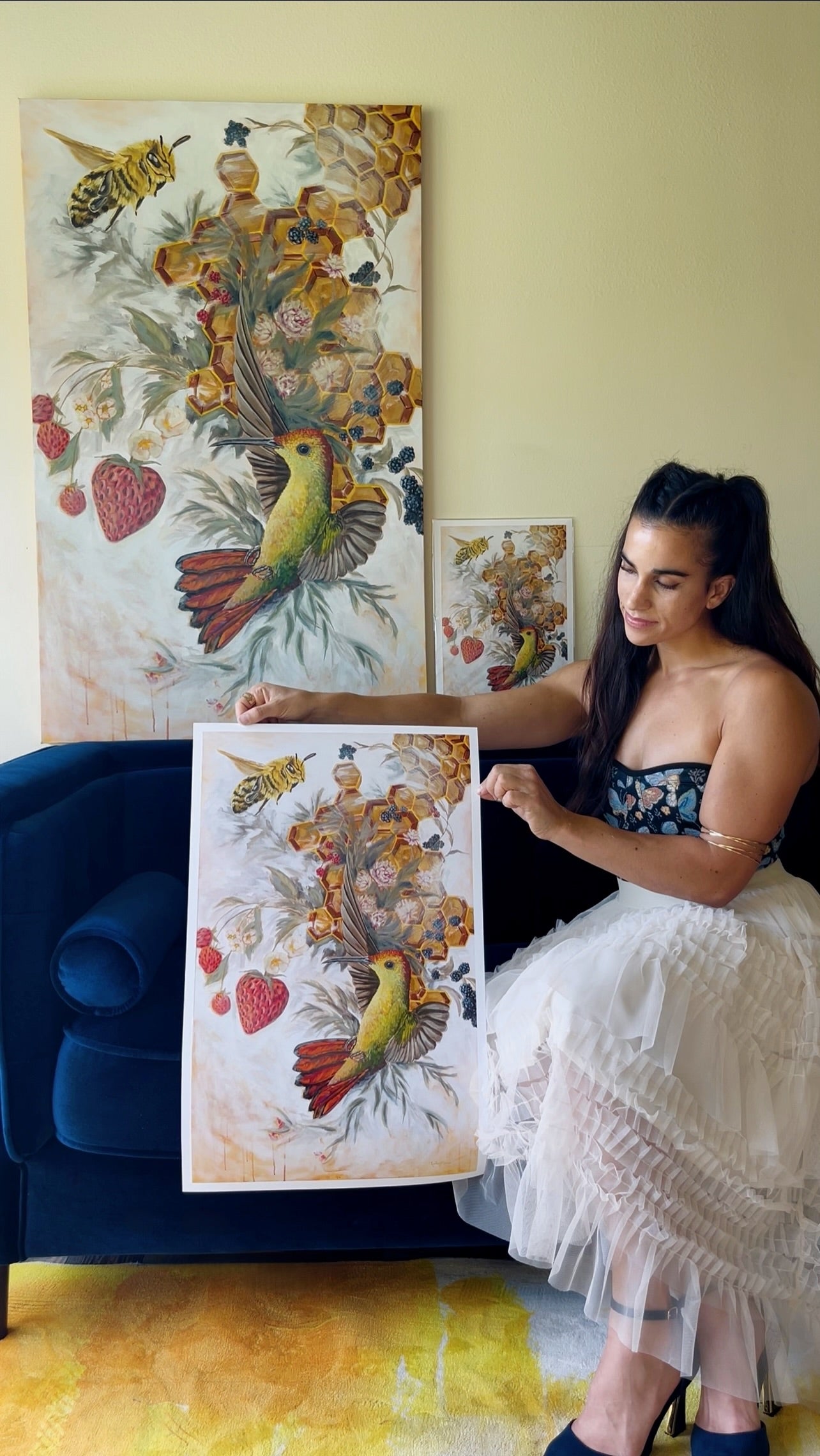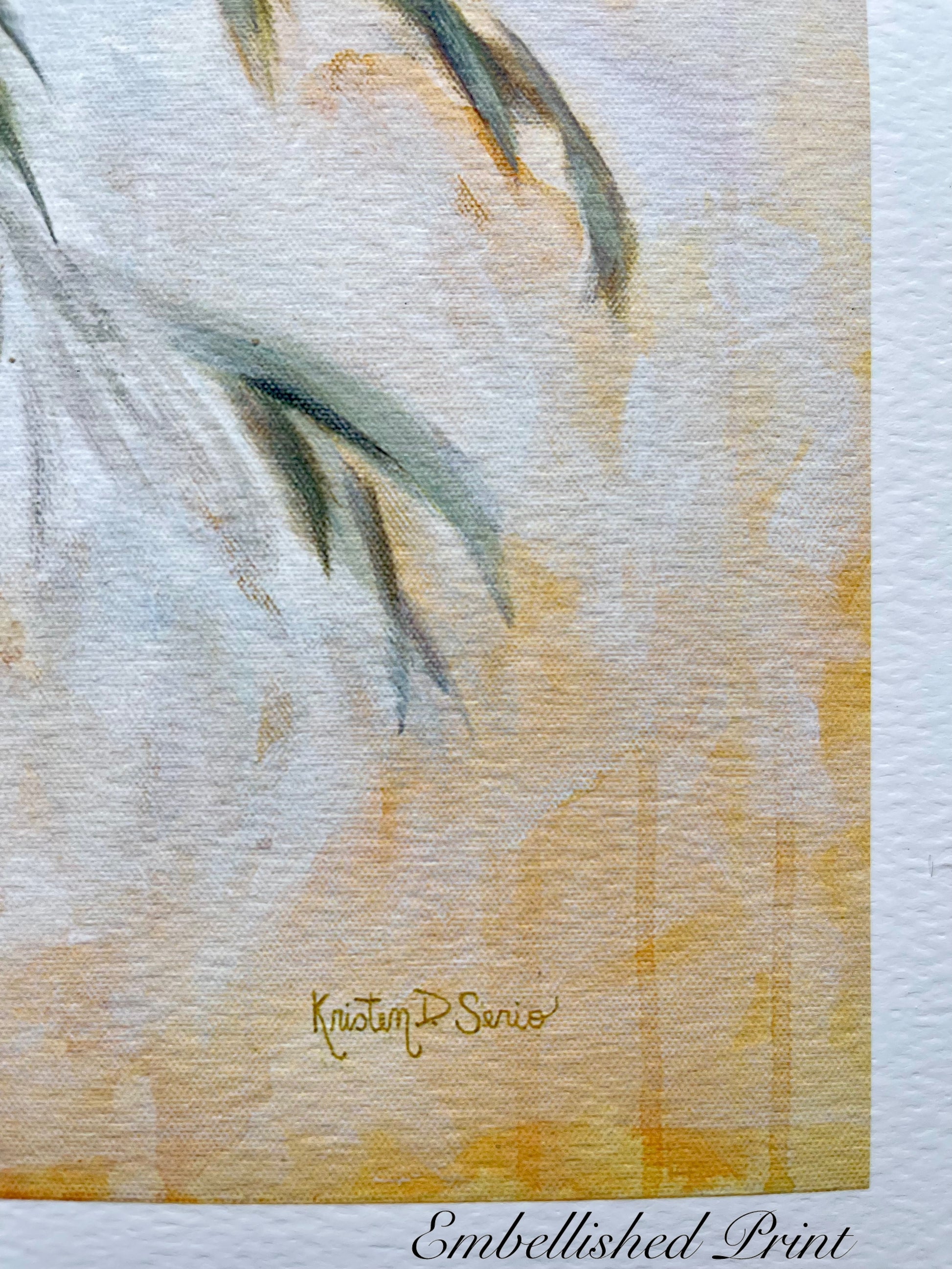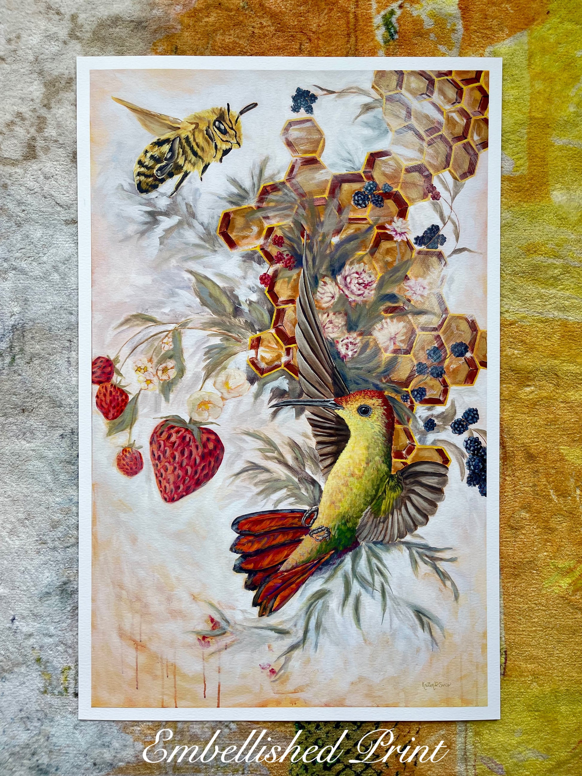 Giclée prints enhanced with hand-painted details, making each piece one-of-a-kind.